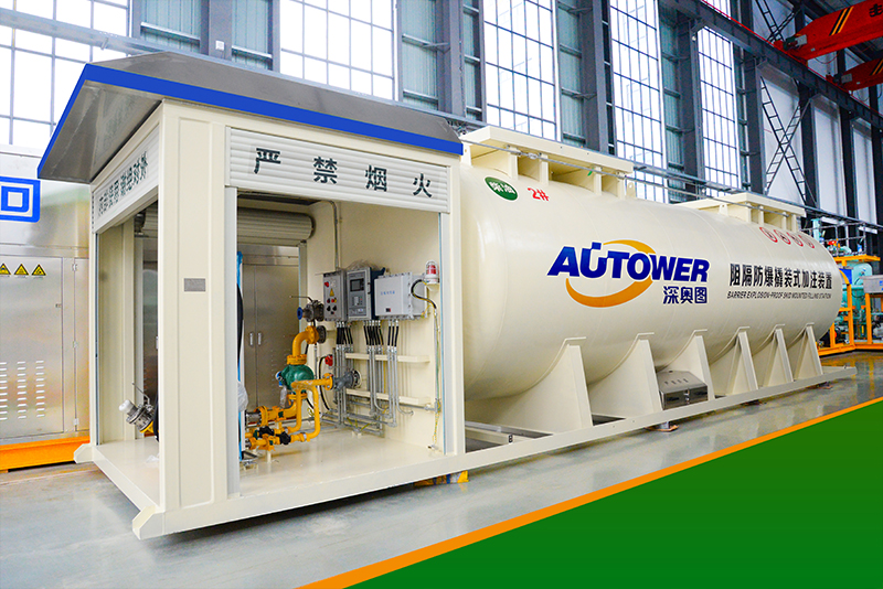 移動式加油撬的儲罐采用雙壁結(jié)構(gòu),可以有效的防止油品外泄。加油站油罐額定容積可根據(jù)項(xiàng)目需要來確定,一般為10m3、20m2、30m2、40m2、50m3,油罐可為單倉成多倉,分別儲存汽油、柴油,內(nèi)罐裝填阻隔防爆材料。配置自動加油機(jī),每臺加油機(jī)帶自封式加油槍。油罐注油采用快速接頭與油罐車相連,利用油罐車機(jī)泵強(qiáng)制注油,或配置卸油泵進(jìn)行充裝。加油機(jī)與油罐連接的管道上裝有緊急切斷閥。加油站安全裝置配有呼吸閥、電子液位計(jì)、漏油觀察視鏡,高溫自動切斷閥,操作倉頂部配有自動干粉滅火器等。