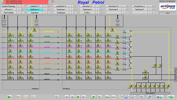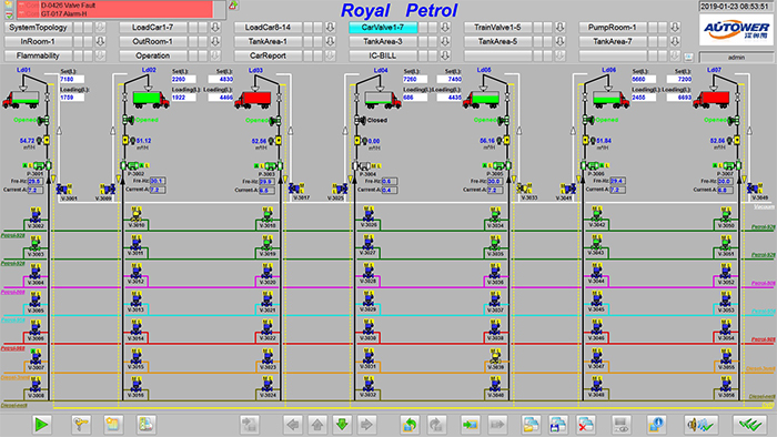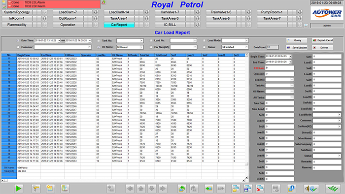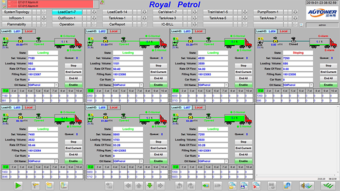 實時計算和顯示庫區(qū)油品存貨:用棒圖和數(shù)據(jù)表顯示所有有品的即時存量和空容量,體積、質(zhì)量。物料存儲狀況的直觀圖形顯示,并通過不同的顏色反映現(xiàn)場生產(chǎn)動態(tài),設(shè)備工作狀態(tài)等。